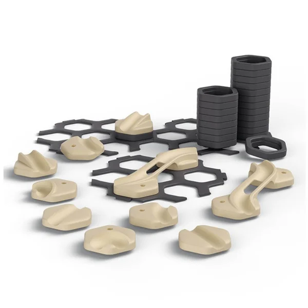 Les pièces sont pensées pour les tout-petits avec un contenu facile à prendre en main. Les matériaux sont principalement issus de ressources renouvelables, fabriqués en Europe et issus de matières biosourcées : fibres de bois et plastique bio.