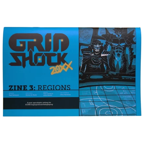 GRIDSHOCK 20XX utilise les règles de ICONS Superpowered Roleplaying. Si vous avez déjà joué à l’emblématique jeu de rôle Marvel Super Heroes RPG de TSR, une grande partie d’ICONS vous semblera familière, et ses statistiques et capacités peuvent facilement être transposées à n’importe quel jeu de rôle qui gère les super-pouvoirs.