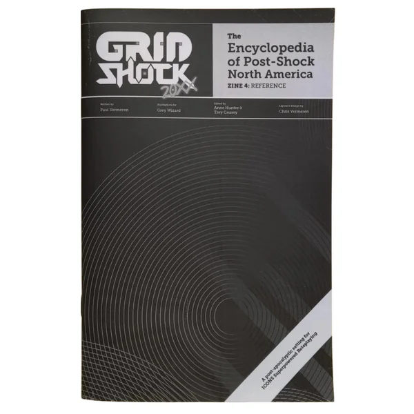 Des détails sur les huit régions principales du monde de GRIDSHOCK 20XX. Le Deadside infesté de morts-vivants et les New Homelands dangereux qui l’entourent ; la théocratie criminelle de Beringia ; la nature transformée en arme et déformée par la réalité de Cascadia ; la dystopie génétique de The Orchard ; la région despotique de Sanction ; et les bastions jumeaux de la Supremacy : Seaboard et Sunrise Sector. - GRIDSHOCK 20XX : L’ENCYCLOPÉDIE DE L’AMÉRIQUE DU NORD POST-SHOCK ZINE 4 : REFERENCE
