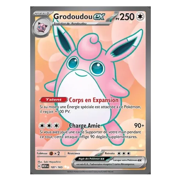 Découvrez Grodoudou (mew187), une carte Pokémon de l’extension 151, provenant du bloc Écarlate & Violet. Idéale pour compléter votre collection, cette carte Ultra Rare plaira autant aux collectionneurs qu’aux joueurs.