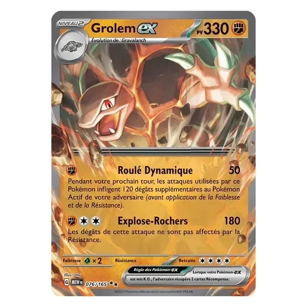 Découvrez Grolem (mew076), une carte Pokémon de l’extension 151, provenant du bloc Écarlate & Violet. Idéale pour compléter votre collection, cette carte Double Rare plaira autant aux collectionneurs qu’aux joueurs.
