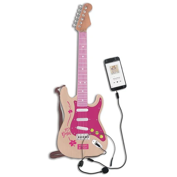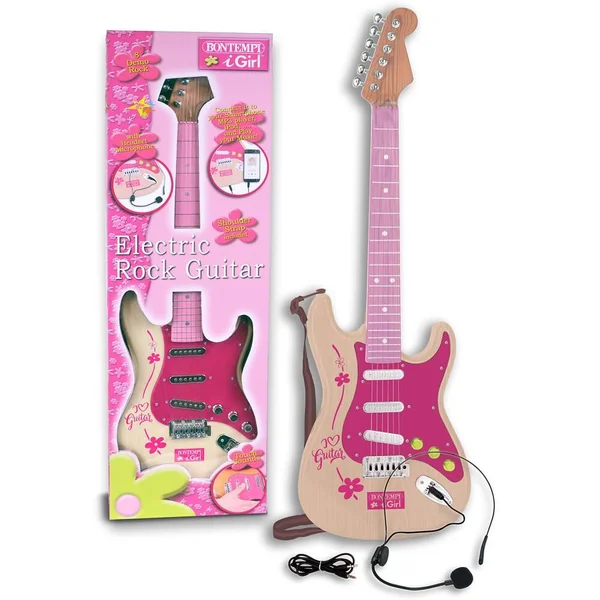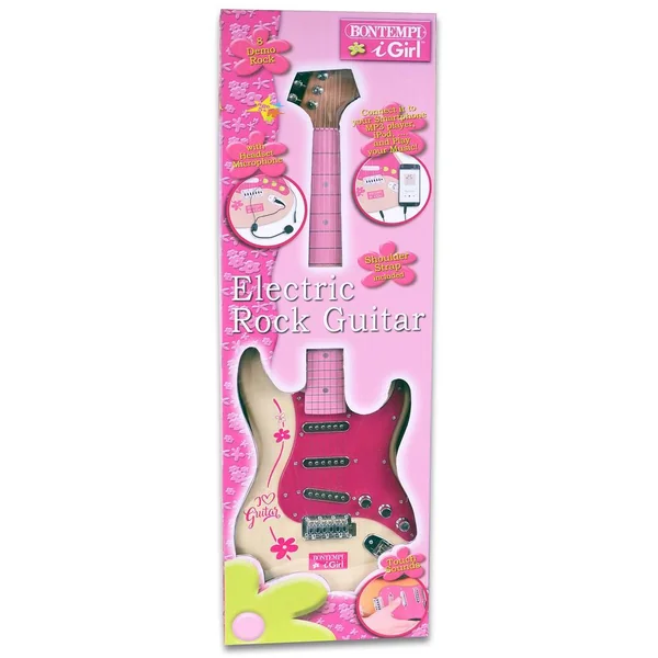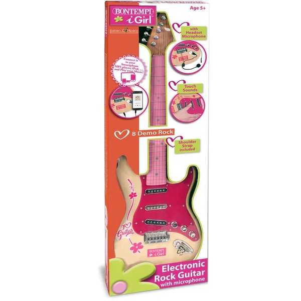 Avec 4 sons rythmiques différents, 6 cordes métalliques avec son rock au toucher et arrêt automatique, et 8 démos. Livrée avec une bandoulière, un micro-casque ainsi qu’une fiche de connexion MP3 et son câble.