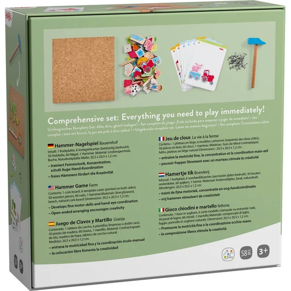 Marteau-piqueur – kit créatif avec un marteau pour les petits bâtisseurs invite les enfants dans le monde de la ferme, où ils peuvent enfoncer des petits cochons, une brouette et d’autres personnages adorables, soit selon un modèle, soit entièrement selon leur propre imagination.