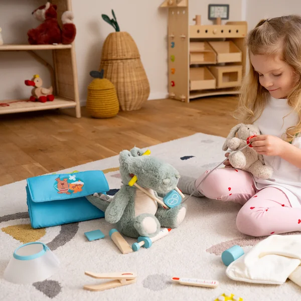 Les petits vétérinaires peuvent soigner les animaux dans leur cabinet de jeu ou se déplacer là où ils sont nécessaires, car le sac se plie en un rien de temps.