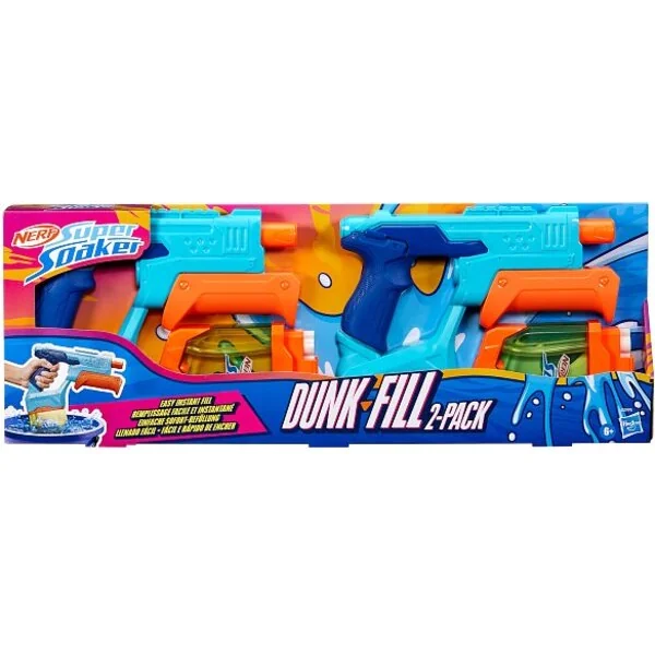 Le pack Nerf Super Soaker Dunk-Fill Duo contient 2 blasters à eau avec un remplissage rapide et facile des réservoirs, vous serez donc immédiatement prêt pour le plaisir mouillé !