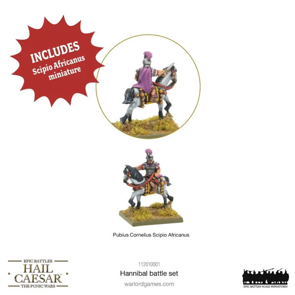 Le set de bataille Hannibal comprend de superbes figurines en résine Warlord de haute qualité représentant Hannibal Barca et Scipion Africanus, les principaux généraux du conflit, et le choix naturel pour mener chaque camp à la victoire ! Ces figurines sont différentes des versions trouvées dans les coffrets Commanders !