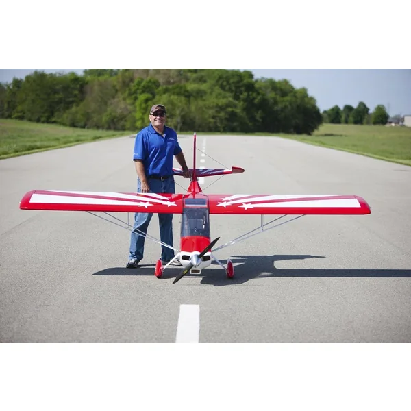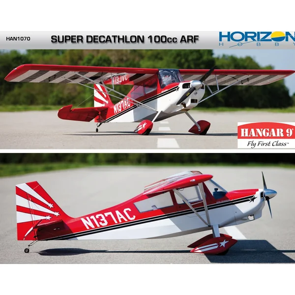 Voici la dernière nouveauté HANGAR 9, Le SUPER DECATLON 100cc , cette magnifique maquette de 3.5m d’envergure fait partie des modèles les plus remarquables de la gamme Hangar 9 et possède de très nombreux détail réalistes, comme les portières fonctionnelles, le tableau de bord détaillé, le cockpit équipé de sièges etc. Malgré sa taille, ce modèle reste facile à transporter grâce à son aile en deux parties et ses haubans escamotables.