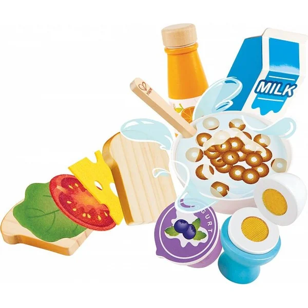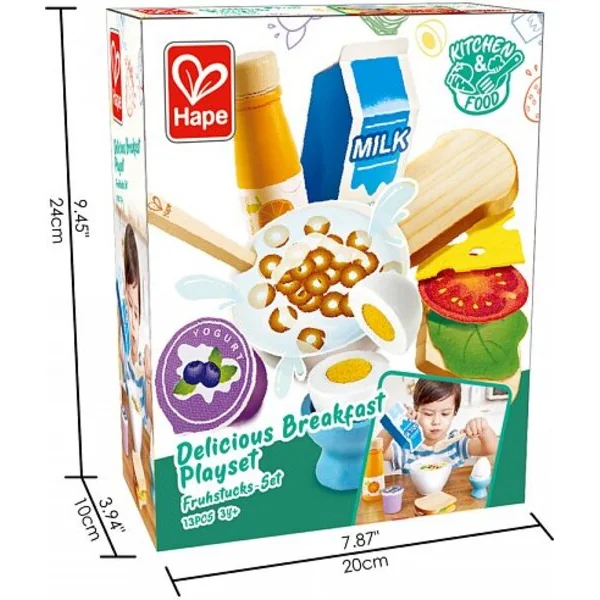Cet ensemble de jeu HAPE aide les enfants à découvrir le petit-déjeuner et les inspire à développer de saines habitudes alimentaires. Encouragez la curiosité des enfants et laissez-les développer leur imagination, leurs compétences linguistiques et sociales en jouant avec cet ensemble réaliste de la plus haute qualité ! Combinez cet ensemble avec d’autres ensembles alimentaires et créez des repas amusants.