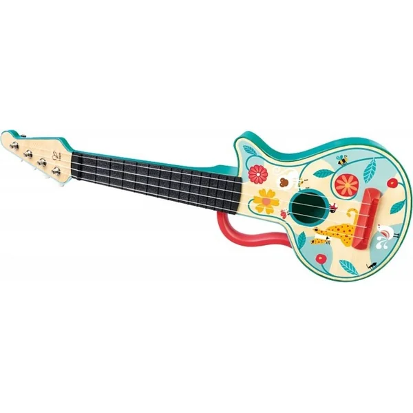 - Contient 4 instruments : ukulélé, rumbushka, tambourin et castagnettes