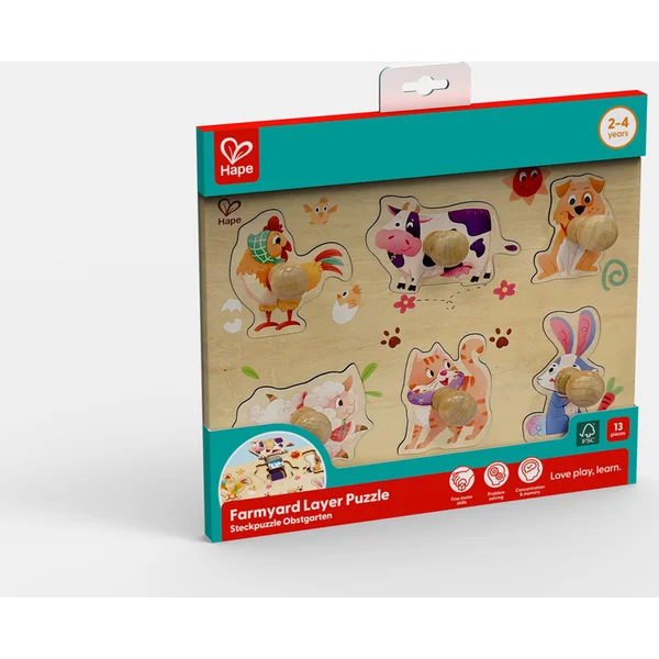 Avec ce puzzle en bois ferme de Hape, les enfants peuvent découvrir de manière ludique la vie à la ferme. Le puzzle coloré a deux couches et des pièces solides avec de grandes poignées en bois, ce qui permet aux petites mains de le saisir facilement. L’exercice de la motricité fine et la coordination main-œil deviennent une aventure joyeuse. Chaque pièce du puzzle cache une image surprenante en dessous, ce qui ajoute encore plus d’excitation au jeu. Les enfants apprennent à reconnaître les animaux de la ferme, à imiter leurs sons et à enrichir leur vocabulaire en jouant. Fabriqué en bois durable avec une peinture adaptée aux enfants. Contient 12 pièces. Dimensions de l’emballage : 28 x 29,5 x 3,5 cm. ge : 2+