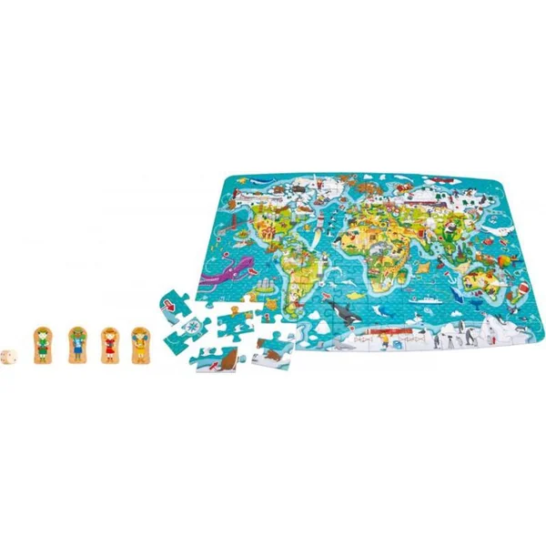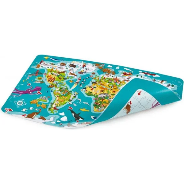 Puzzle éducatif et jeu de société en un ! Montrez aux enfants le monde entier de manière ludique et laissez-les assembler les continents à l’aide d’un puzzle amusant pour enfants. Les pièces s’emboîtent parfaitement. Chaque enfant à partir de 5 ans peut le résoudre et s’amuser tout en exerçant ses neurones et en se détendant. Une fois le puzzle assemblé, un plateau de jeu se forme et le jeu peut commencer. Fabriqué en matériau de qualité et résistant. Le jouet se compose de 105 pièces. ge : 5+. Dimensions : 87 x 57,5 cm.