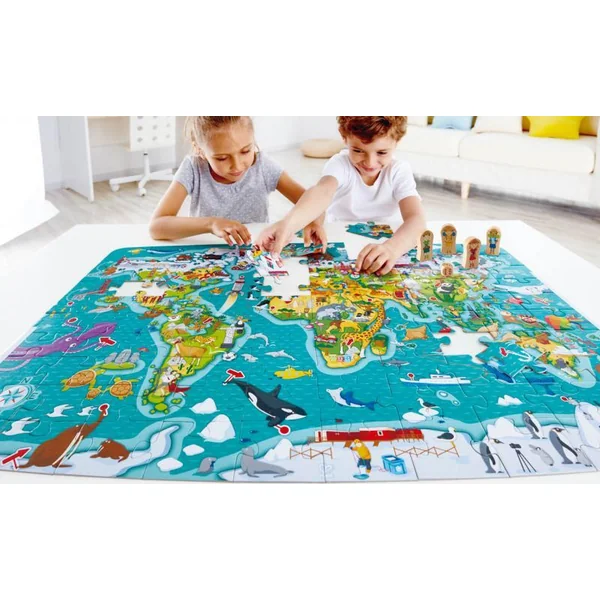Hape Puzzle pour enfants – Carte du monde 2 en 1