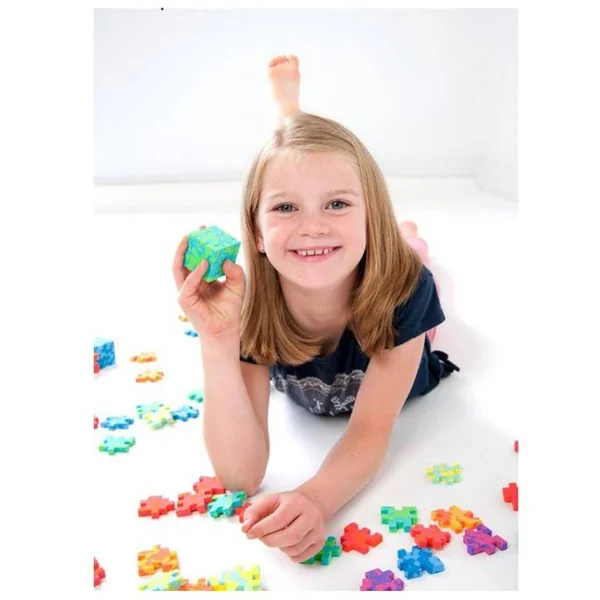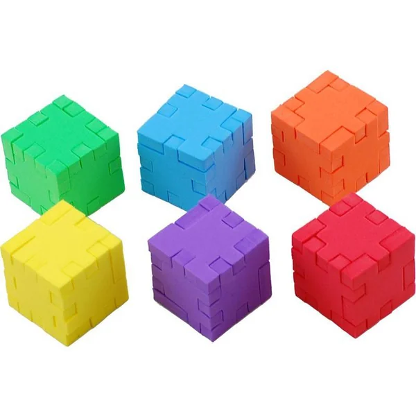Chacun des six Happy Cube possède sa forme et sa couleur propres et permet de réaliser différents puzzles.