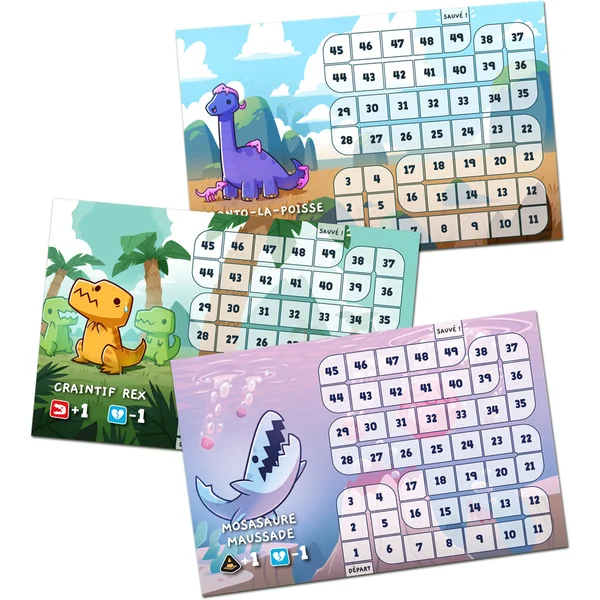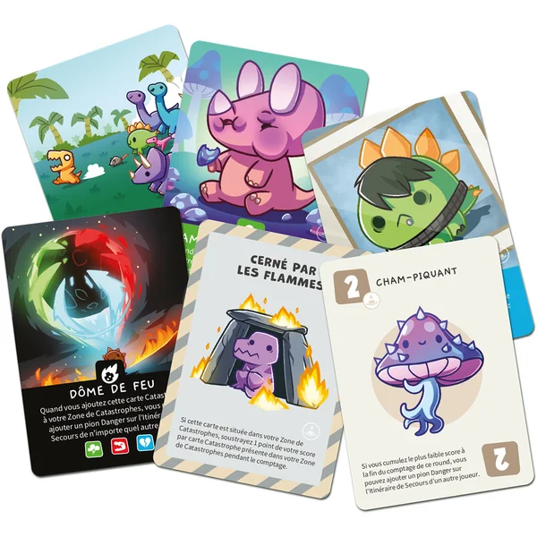 Dangers Droit Devant est une extension pour Happy Little Dinosaurs comprenant deux nouveaux Dinosaures et trois éléments de jeu inédits. Les pions et cartes Danger confronteront vos adversaires à de nouvelles calamités, tandis que les cartes Jour de Chance vous aideront à éviter de terribles catastrophes…