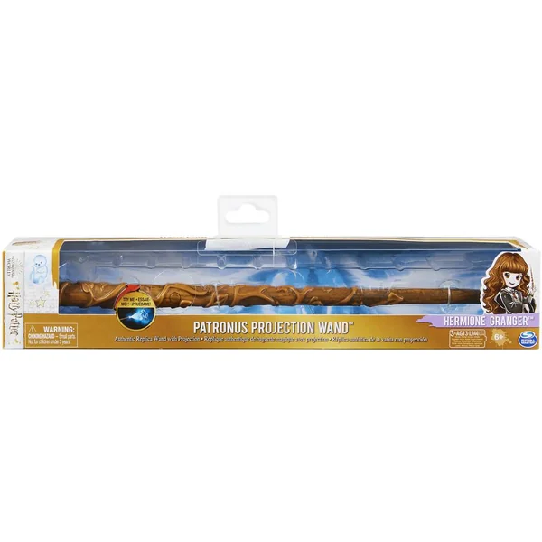 Une baguette magique interactive officielle de l’univers Harry Potter pour projeter un Patronus. Réplique authentique avec projection lumineuse d’un Patronus avec effet tremblement lors de la projection. Longueur de la baguette : environ 30 cm. Fonctionne avec 3 piles LR44 fournies. Boîte fenêtre avec fonction démonstration.