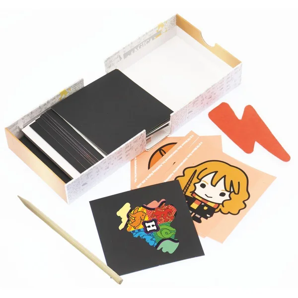 Coffret de 50 cartes 8,5 x 8,5 cm à gratter pour découvrir de jolies illustrations avec des personnages du monde de Poudlard.