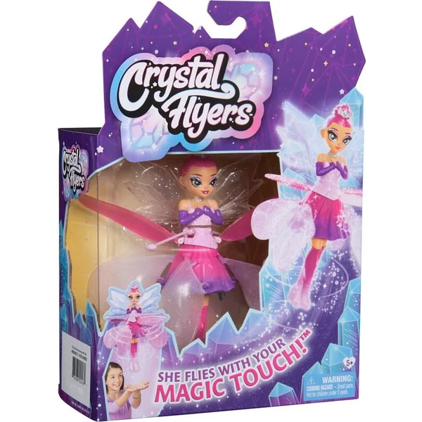Découvrez la magie des Crystal Flyers, des poupées qui peuvent vraiment voler grâce à votre touche magique ! Cette poupée volante interactive Crystal Flyers présente de magnifiques détails : des cheveux arc-en-ciel, des accents métalliques comme son diadème et son collier, une robe scintillante et des ailes en cristal.