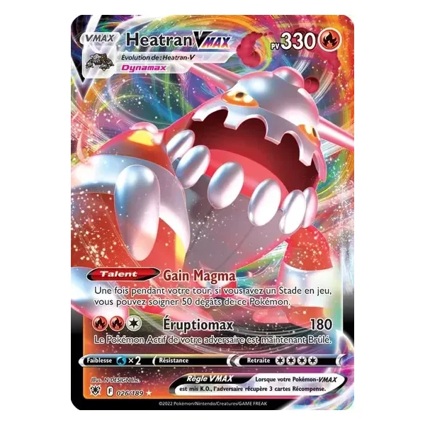Découvrez Heatran (asr026), une carte Pokémon de l’extension Astres Radieux, provenant du bloc Épée & Bouclier. Idéale pour compléter votre collection, cette carte Ultra Rare plaira autant aux collectionneurs qu’aux joueurs.