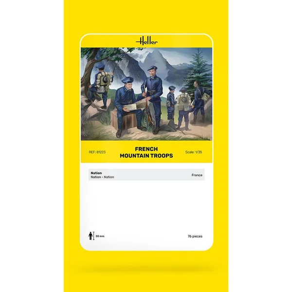 Heller Chasseurs Alpins 1:35 81223Découvrez les maquettes à construire de Heller : Qualité et ExcellenceDes modèles réduits de renommée mondialeDepuis des décennies, Heller est reconnu pour la qualité de ses modèles réduits, offrant aux passionnés de maquettisme une expérience unique. Une gamme diversifiée pour tous les passionnésQue vous soyez un amateur débutant ou un maquettiste chevronné, les maquettes à construire Heller sauront vous séduire. Avec une large gamme de modèles allant des avions aux voitures, en passant par les bateaux et les véhicules militaires, Heller propose un vaste choix pour satisfaire toutes les envies. Des maquettes détaillées et faciles à assemblerChaque maquette est soigneusement conçue pour offrir un niveau de détail exceptionnel. Les pièces sont précises, bien ajustées et faciles à assembler, garantissant ainsi une expérience de construction agréable et gratifiante. Les instructions claires et détaillées vous guident pas à pas tout au long du processus, vous permettant de réaliser des modèles de grande qualité. Une fidélité historique et un réalisme saisissantEn plus de la qualité de fabrication, les maquettes Heller se distinguent également par leur diversité. Que vous souhaitiez recréer des avions emblématiques de l’histoire de l’aviation, des voitures de course légendaires ou des navires célèbres, vous trouverez forcément votre bonheur parmi la large sélection proposée. La réputation de Heller repose sur son engagement envers l’authenticité et l’exactitude historique. Chaque modèle est fidèle aux caractéristiques et aux détails des véritables véhicules, garantissant ainsi une reproduction réaliste. Les passionnés d’histoire et les collectionneurs apprécieront la précision et le réalisme des maquettes Heller. Ne cherchez plus, optez pour les maquettes à construire Heller, la référence incontournable du maquettisme français. Que vous souhaitiez vous lancer dans une nouvelle passion ou enrichir votre collection existante, les maquettes Heller vous offriront une expérience de construction gratifiante et des modèles époustouflants. N’attendez plus et plongez dans l’univers fascinant des maquettes à construire Heller. Laissez libre cours à votre créativité et à votre passion pour le maquettisme en choisissant la qualité et l’expertise d’un fabricant français réputé.