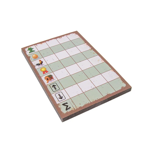 À la fin de la partie, vous gagnerez des points grâce au plus grand groupe de poules de la même race dans votre basse-cour, à votre jeton coq et à la carte but. N’oubliez pas que certaines poules rares vous donnent des médailles qui valent des points à la fin du jeu.