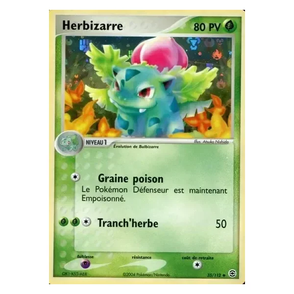 Découvrez Herbizarre (fl035), une carte Pokémon de l’extension Rouge Feu & Vert Feuille, provenant du bloc Ex. Idéale pour compléter votre collection, cette carte Peu Commune plaira autant aux collectionneurs qu’aux joueurs.
