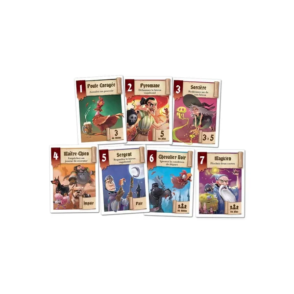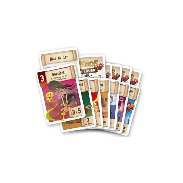 Dans Héros à louer, les plus grands aventuriers du royaume se sont réunis ! Votre but : être le premier à recruter 6 héros différents pour partir à l’aventure !