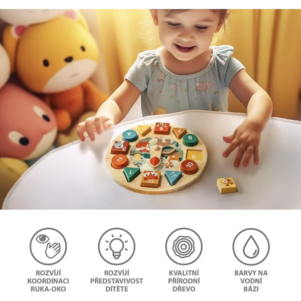 Les horloges en bois avec des activités offrent beaucoup d’apprentissage amusant. L’enfant apprend de manière totalement naturelle à travers le jeu.