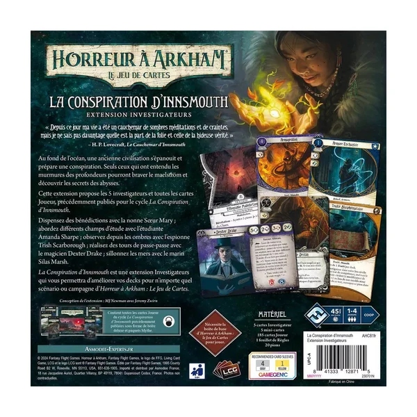 Horreur à Arkham JCE : La Conspiration d’Innsmouth est une extension Investigateurs jouable de 1 à 4 joueurs dès 14 ans pour des parties d’environ 45 minutes, édité par Fantasy Flight Games.