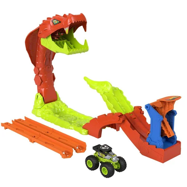Circuit HotWheels Monster Truck avec un lanceur a slam sur le thème du Serpent