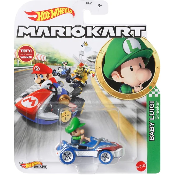 Mini-véhicules Hot Wheels à l’échelle 1:64 inspirés de Mario Kart pour des courses et cascades endiablées ! Retrouvez le plaisir du jeu caractéristique des produits Hot Wheels, reproduisez les cascades incroyables du jeu vidéo, évitez les dangers, déverrouillez des fonctionnalités, faites la course et revivez de grandes aventures. Tous les véhicules représentant un joueur de Mario Kart peuvent être utilisés sur les pistes Hot Wheels. Tous vendus séparément.