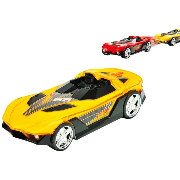 Appuie sur le bouton pour voir la voiture Hyper Racer Hot Wheels changer de couleur quand elle est à grande vitesse. Yur So Fast passe du jaune au rouge. Avec effets sonores (bruits de moteur, frein, musique) et lumineux. En plastique. Fonction Try Me.