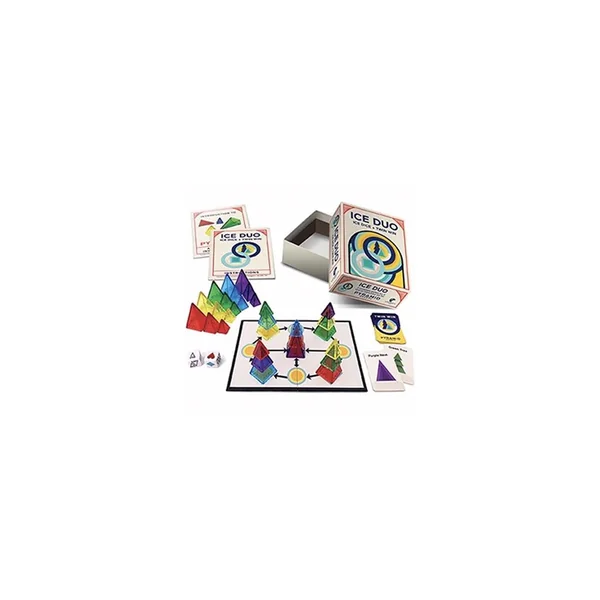 Conçu pour deux joueurs et rempli de défis captivants, Ice Duo est idéal pour les soirées jeux, les parties rapides ou comme introduction au monde polyvalent des jeux de pyramides. De plus, Ice Duo peut servir d’extension pour Pyramid Arcade, ajoutant cinq trios de pyramides colorées pour enrichir vos options dans d’autres jeux populaires basés sur les pyramides. Que vous preniez des risques avec Ice Dice ou planifiez votre victoire dans Twin Win, Ice Duo offre un plaisir infini dans une seule boîte pratique.