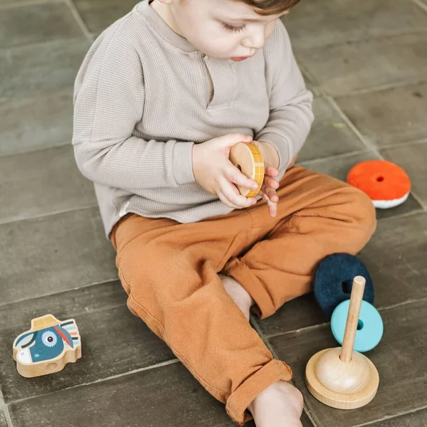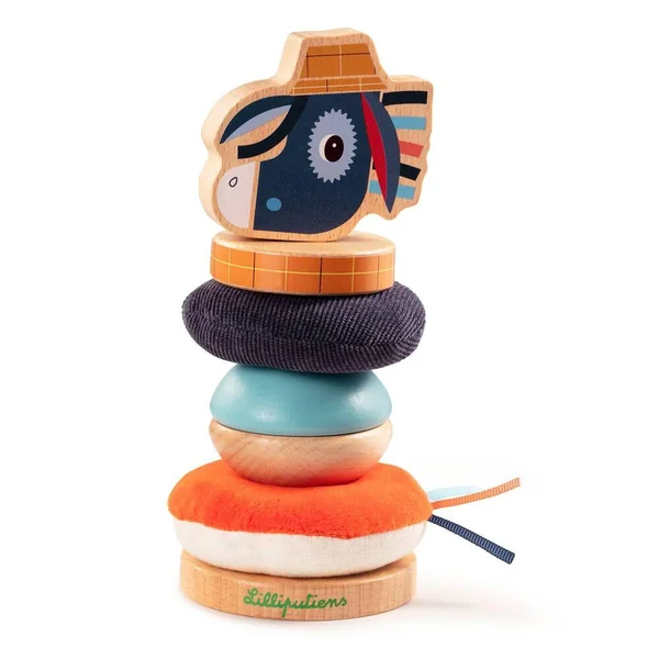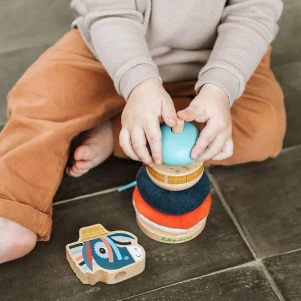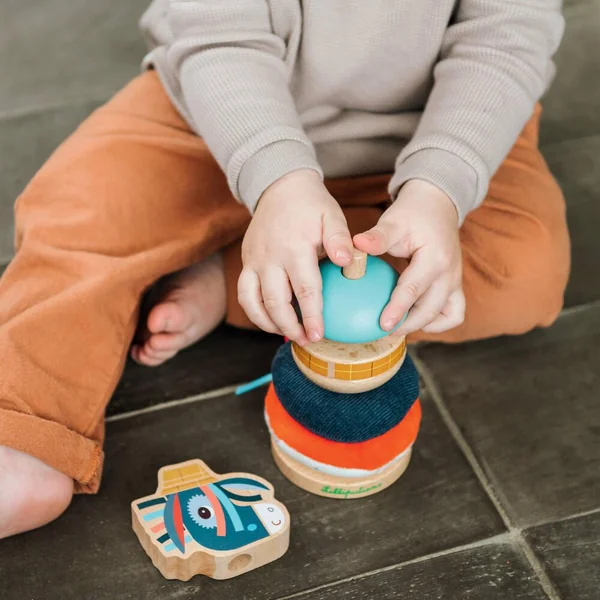 Cette pyramide à empiler originale et gaie, réalisée en différents matériaux, développe la motricité fine des petits bouts. Empilez les éléments et donnez libre cours à votre créativité. Les matériaux et les couleurs de nature différente éveillent leurs sens.