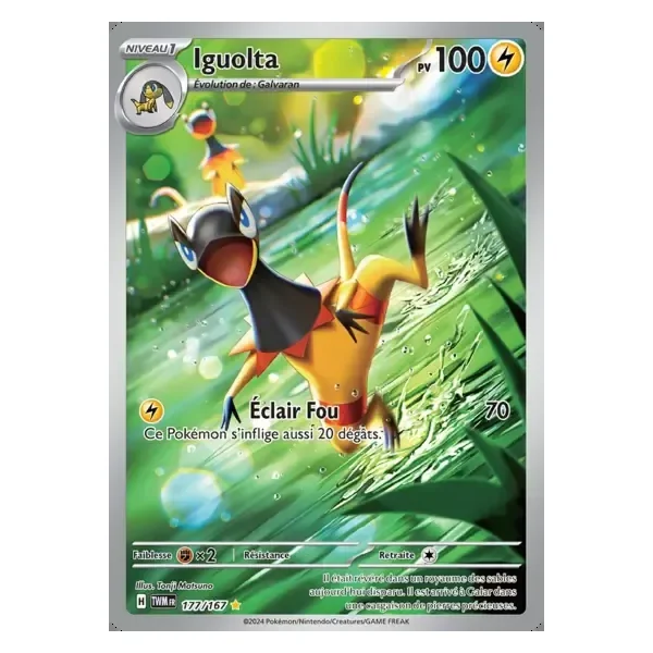 Découvrez Iguolta (twm177), une carte Pokémon de l’extension Mascarade Crépusculaire, provenant du bloc Écarlate & Violet. Idéale pour compléter votre collection, cette carte Illustration Rare plaira autant aux collectionneurs qu’aux joueurs.