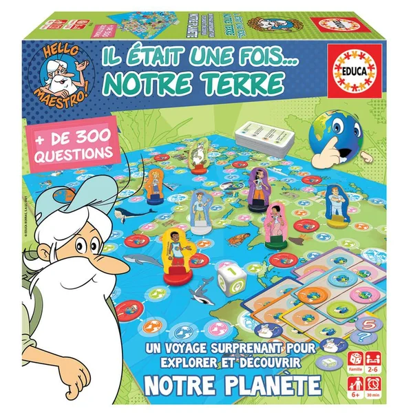Ce jeu de plateau a été inspiré de la série culte « Il était une fois… Notre Terre », racontant les aventures de Maestro et ses amis à travers le monde.