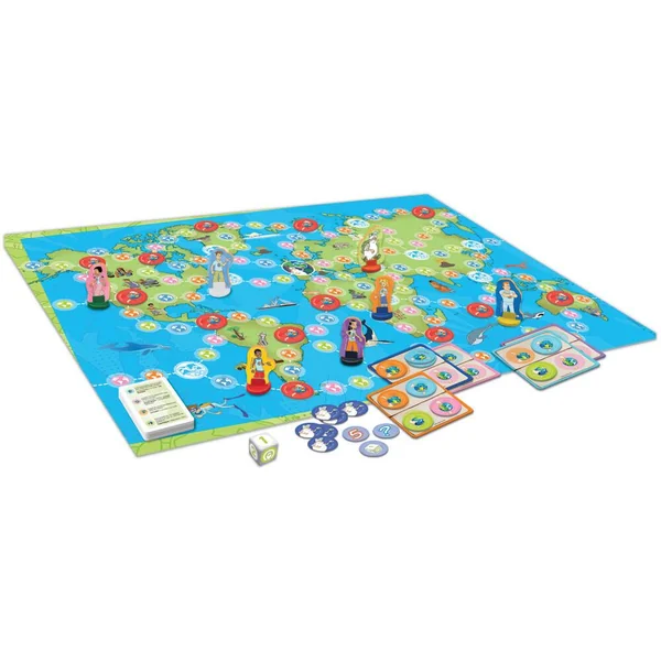 Un grand voyage autour de la Terre en compagnie de Maestro, qui vous envoie explorer le monde. Répondez aux questions pour compléter votre carnet d’études et apprendre plein de choses passionnantes sur notre belle planète et comment la protéger. Le premier qui complète son carnet d’études et revient à la base d’opérations remporte la partie. Contient : 1 plateau de jeu, 6 pions personnages, 6 cartons « carner d’études », 1 pion Maestro, 1 dé à 6 faces avec autocollants, 24 jetons planète réversibles, 15 jetons aide de Maestro, 96 cartes de questions. Pour 2 à 6 joueurs.