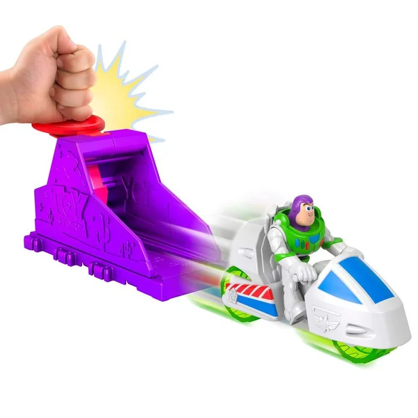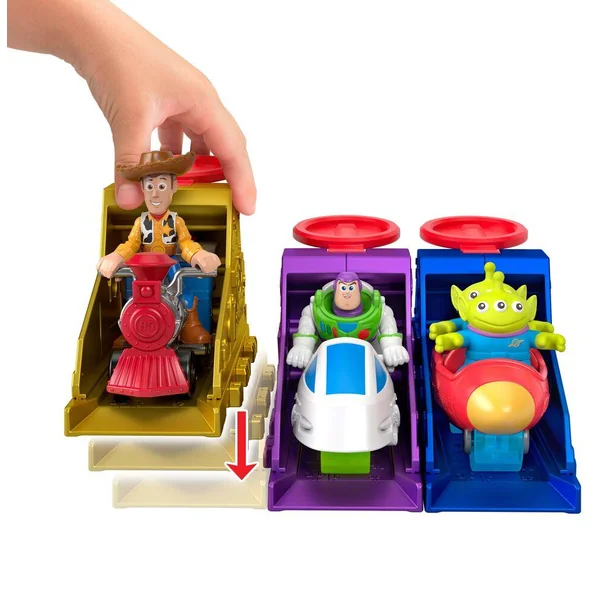 Lanceurs personnalisés avec véhicules de l’univers Toy Story. On retrouve Woody, Buzz l’éclair et les Aliens sur leurs motos pour faire la course.