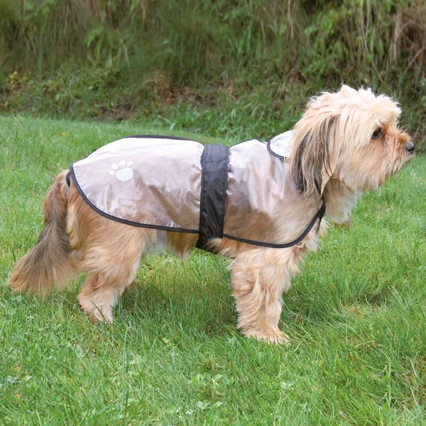 Trixie Imperméable Tarbes transparent – imperméable transparent avec patte réfléchissante, élastique pour la queue assure que l’imperméable ne se décolle pas, il est fabriqué en PVC résistant. Fermeture par velcro sur le ventre.