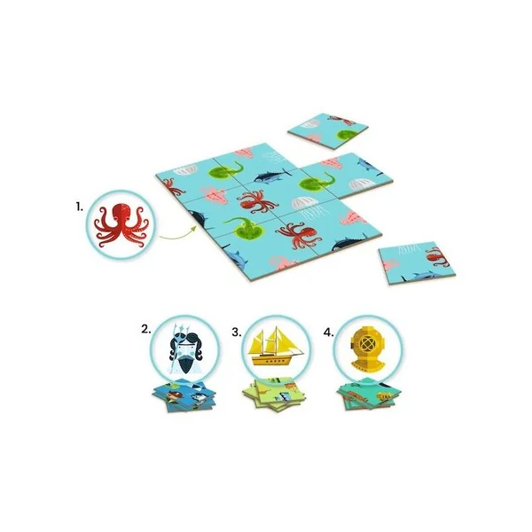 4 puzzles-défis qui rendent dingos ! À la façon d’un jeu de domino, reconstituez les images pour réussir chacun des 4 puzzles-défis et former un puzzle carré.