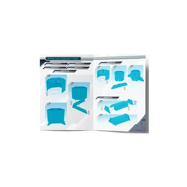 Le Scenery Pack inclut un décor en carton prêt à jouer, imprimé recto-verso (5 bâtiments, 4 générateurs et 5 connecteurs d’énergie et de données), un tapis de jeu, ainsi que des marqueurs, gabarits et une réglette en carton. Tout ce qu’il te faut pour commencer à jouer !