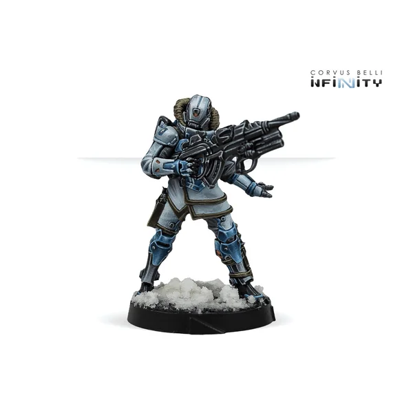 Cette boîte comprend 3 figurines : 1 Karhu Ingénieur avec Fusil MULTI, 1 Karhu avec Feuerbach, et 1 Karhu avec Fusil MULTI. Une boîte qui ajoutera de la polyvalence aux listes d’armées que vous pouvez créer avec votre Action Pack PanOceania et qui vous permettra de créer des Fireteams dans l’armée sectorielle Svalarheima WinterFor.