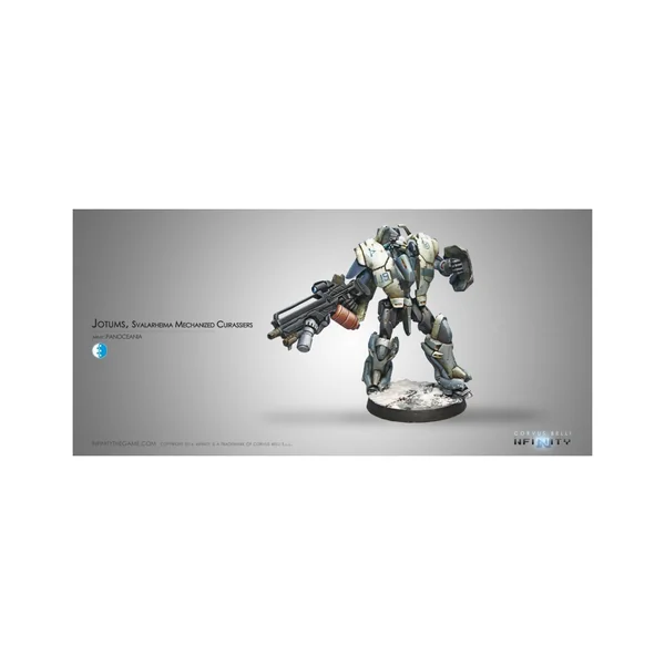 Dans l’organigramme de la cavalerie blindée Panocéanienne, les Jotums forment le Régiment de Cuirassiers Blindés de Svalarheima ; De fait, leur équipement est conçu pour fonctionner dans les environnements les plus inhospitaliers. Ces systèmes incluent un système d’extension plantaire pour parcourir un terrain enneigé ou doux, un système de protection environnemental qui évite les dysfonctionnements en raison de faibles températures ou de causes climatiques extrêmes et un meilleur système de commande et de gestion des avaries. Connu sous le nom de Xiǎn Shān (铣 山, la Montagne d’Acier) par les troupes Yu Jing, leurs confrontations avec les Blue Wolves sur les plaines gelées de Svalarheima sont légendaires.