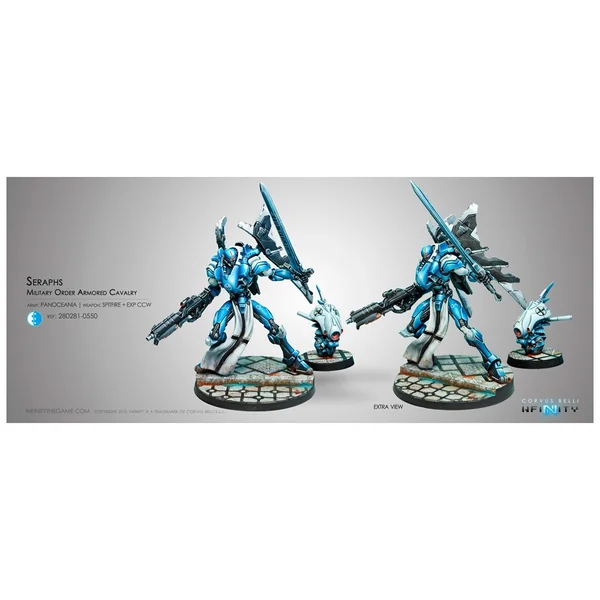 Ils sont imprudents, ils attaquent sans crainte de la mort parce qu’ils savent qu’ils sont imprégnés du pouvoir du Christ. Une telle ferveur religieuse a conduit à un si grand nombre de morts parmi les officiers de toutes les Ordres qu’il a décidé de leur équiper des unités de combat à distance. Actuellement, les Seraphs sont l’élément le plus visible de toute force d’attaque de n’importe quelle Ordre militaire, toujours sur la ligne de front de bataille qui décharge la fureur de Dieu à travers ses propres systèmes d’armes ou ceux de leurs Auxbots qui l’accompagnent.