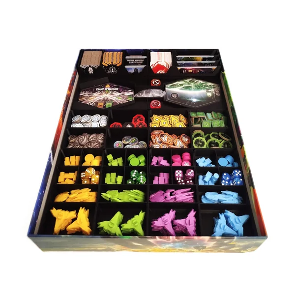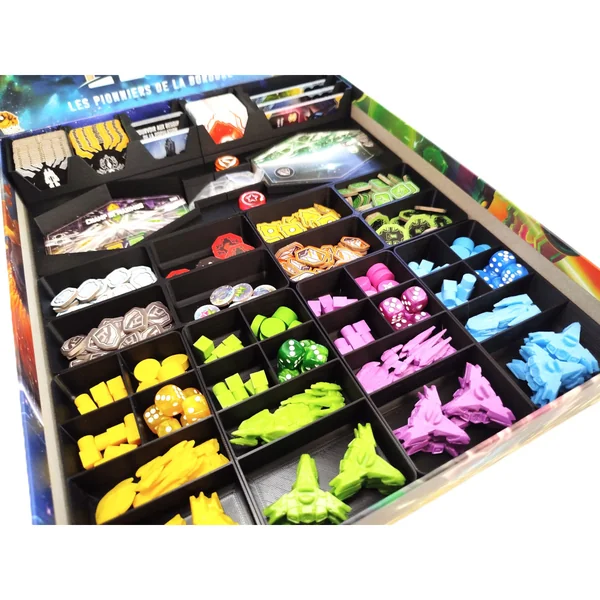 Conçu spécialement pour le jeu Andromeda’s edge, cet insert optimise le rangement de toutes les pièces du jeu : tuiles, pions et cartes (avec ou sans sleeves), le tout dans une seule boîte. Chaque compartiment a été pensé pour une installation rapide et efficace.