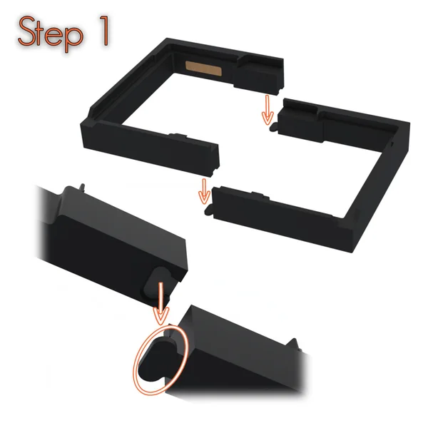 Le rangement d’origine a été remplacé par un tout nouveau système de rangement, conçu pour gagner de la place et maximiser l’organisation.- Ce cadre est composé de deux parties emboîtables, parfaitement ajustées pour un maintien sécurisé.