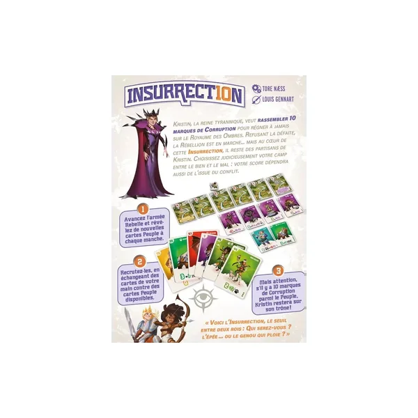 Dans ce jeu, chaque participant incarne soit un agent de la résistance, soit un fidèle serviteur de la Reine Kristin, engagés dans une lutte pleine de tension et de retournements. À chaque tour, vous échangez une carte de votre main avec celles disponibles dans une rivière centrale alimentée par tous les joueurs.