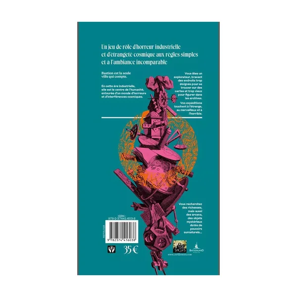 Into the Odd est un jeu tout-en-un qui contient les règles, la présentation du monde étrange, une sélection d’arcana, une aventure et des tables pour choisir ou générer protagonistes, mystères et autres lieux à parcourir
