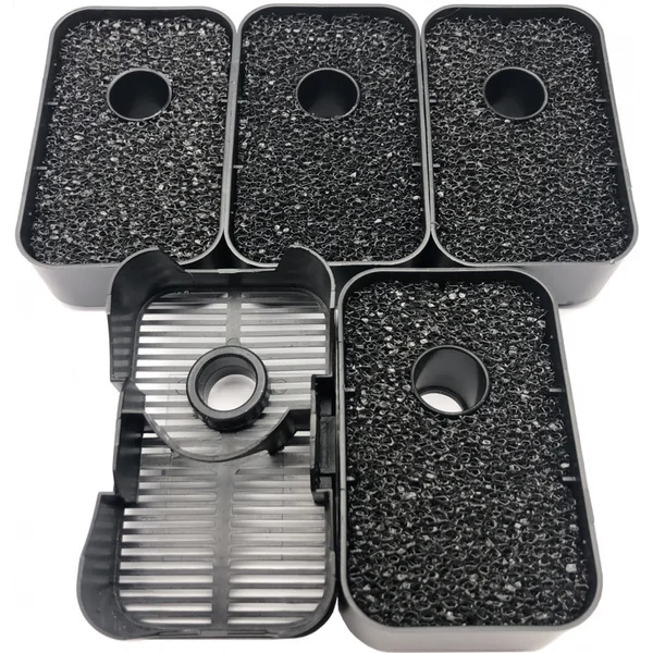 Le paquet comprend un réservoir filtrant avec une tête, 2 entrées de tuyau fermables et 4 paniers filtrants avec biomolitan – nous proposons un biomolitan de rechange ici, mais nous vous recommandons vivement de remplir au moins 2 paniers avec un autre média filtrant hautement poreux, comme Seachom Matrix ou Aquario Neo.