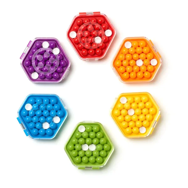 Prêt pour un IQ Mini plus exigeant ? Essayez IQ Mini Hexpert ! Un jeu de la gamme IQ qui tient dans votre poche et peut être emporté partout. Créez vos propres défis en déplaçant les bloqueurs puis remplissez le plateau hexagonal avec les six pièces du puzzle restantes. Choisissez votre couleur favorite et défiez vos amis ou votre famille en mode compétitif pour encore plus d’amusement ! Trouvez des défis supplémentaires, des indices et les solutions en ligne via le QR code ! Plusieurs coloris disponibles !