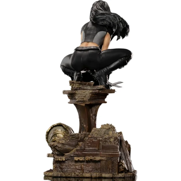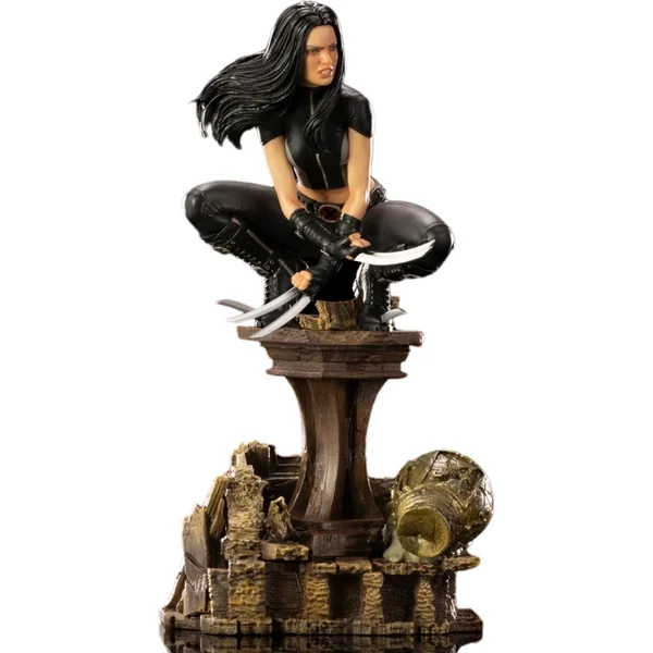 La figurine de collection X-23 soigneusement détaillée de Iron Studios représente l’héritière mortelle de Wolverine dans une pose de combat dynamique. Laura Kinney, connue sous le nom de code X-23, est capturée sur les décombres du manoir démoli Mansion X, où elle se prépare à affronter l’invasion des forces de Magneto et des robots Sentinel avec ses griffes sorties. La figurine se tient près des restes d’un poteau en bois, tandis qu’à ses pieds repose une urne contenant les cendres d’un ancêtre, ce qui contribue à l’atmosphère de combat dramatique pour protéger sa famille adoptive X-Men et l’équipe X-Force.